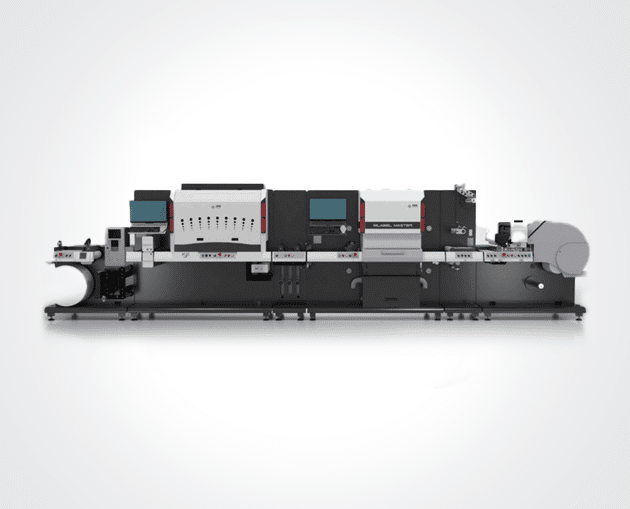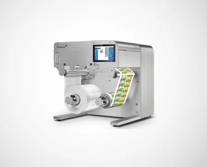 A tabletop label printing press that combines the features and functionality of a traditional large production press in a compact footprint.